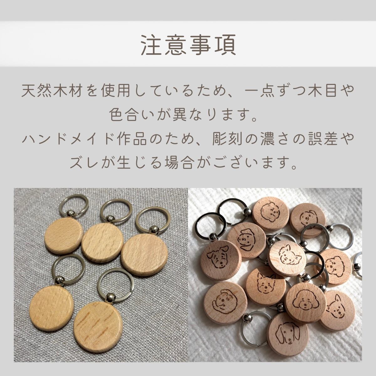 ハンドメイド作品のため、彫刻の濃さの誤差やズレが生じる場合がございます。