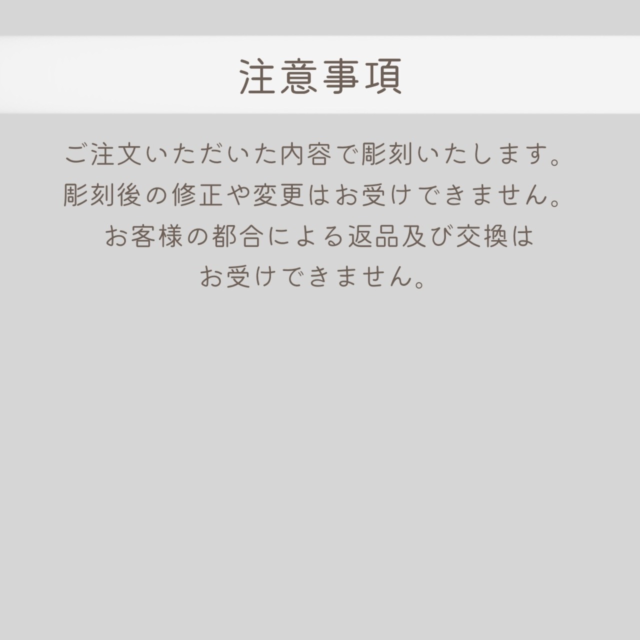 ご注文いただいた内容で彫刻いたします。彫刻後の修正や変更はお受けできません。