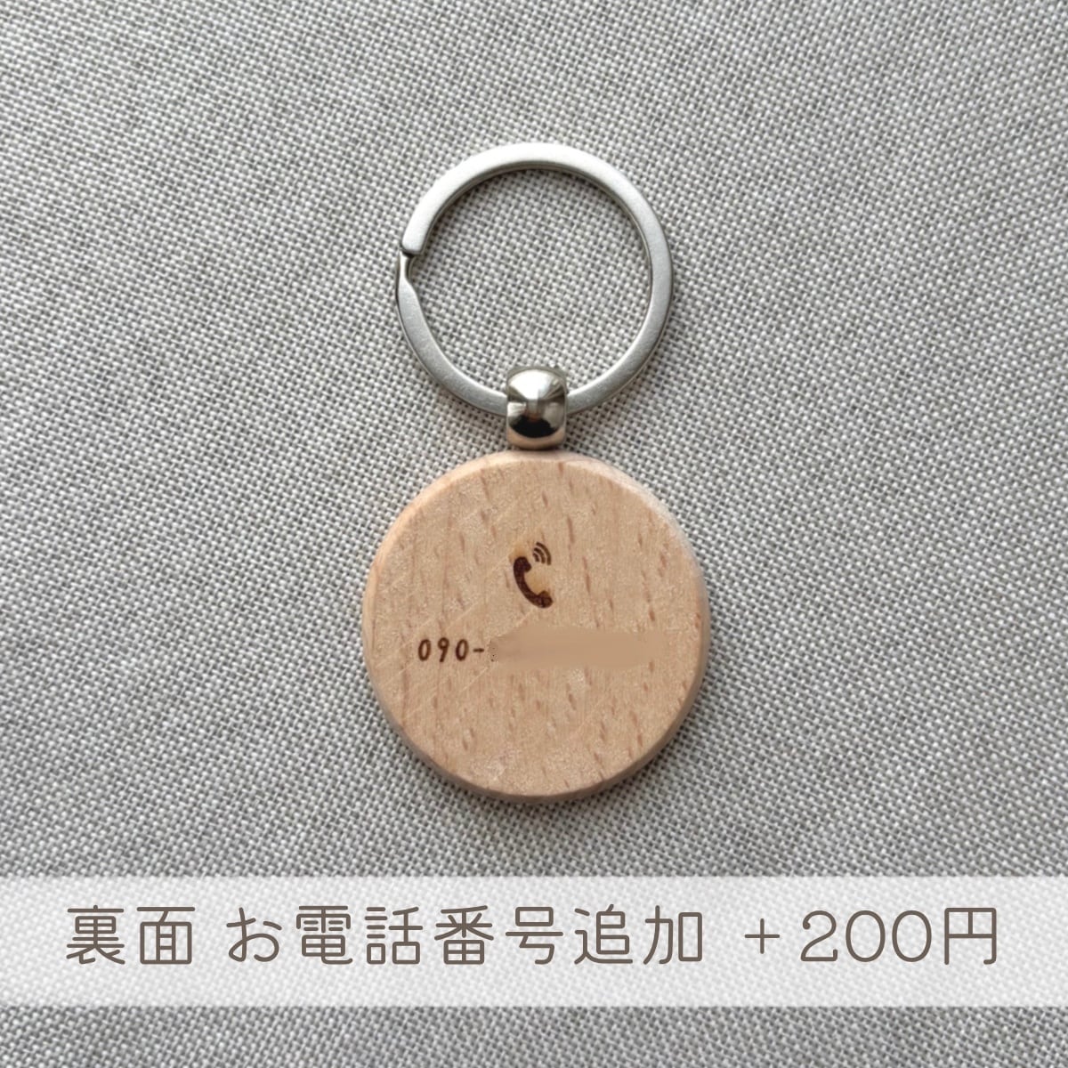 オプションで表面にお名前、裏面にお電話番号を彫刻可能です。